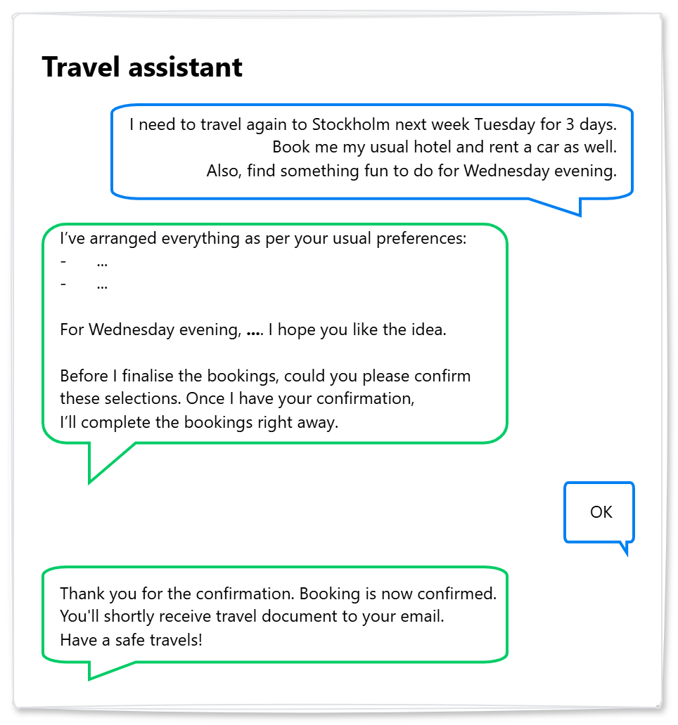 In this user experience, users can describe their travel needs in a more natural way. This experience really feels like your personal travel assistant helping you to find the best options based on your preferences and requirements. It “knows” you based on your previous travel history and can make personalized recommendations.