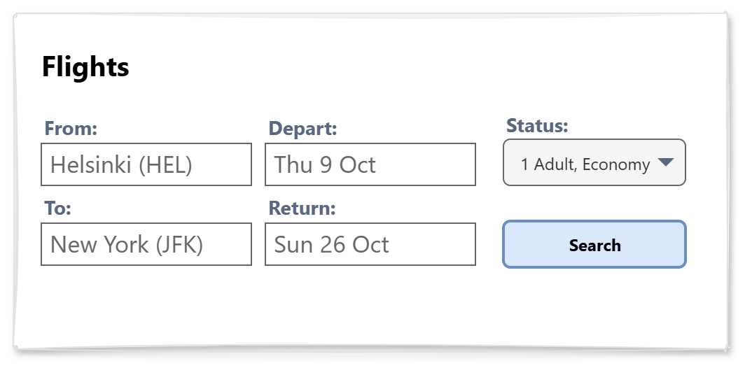 Here is user interface of a traditional applications for travel booking scenario. They typically start by looking for flights: