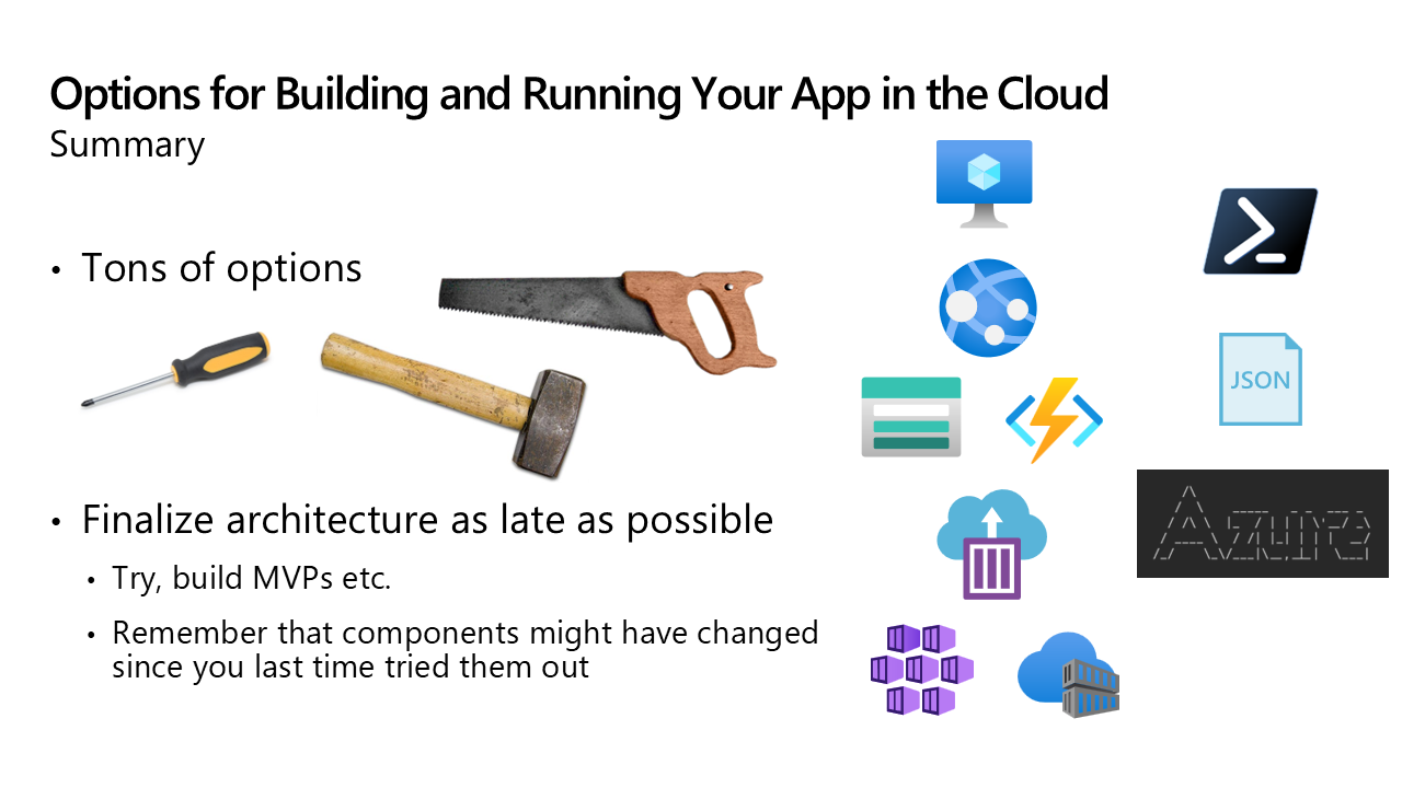 This post reminded me from one of my presentation from 2020. Here’s the summary slide from that presentation:
